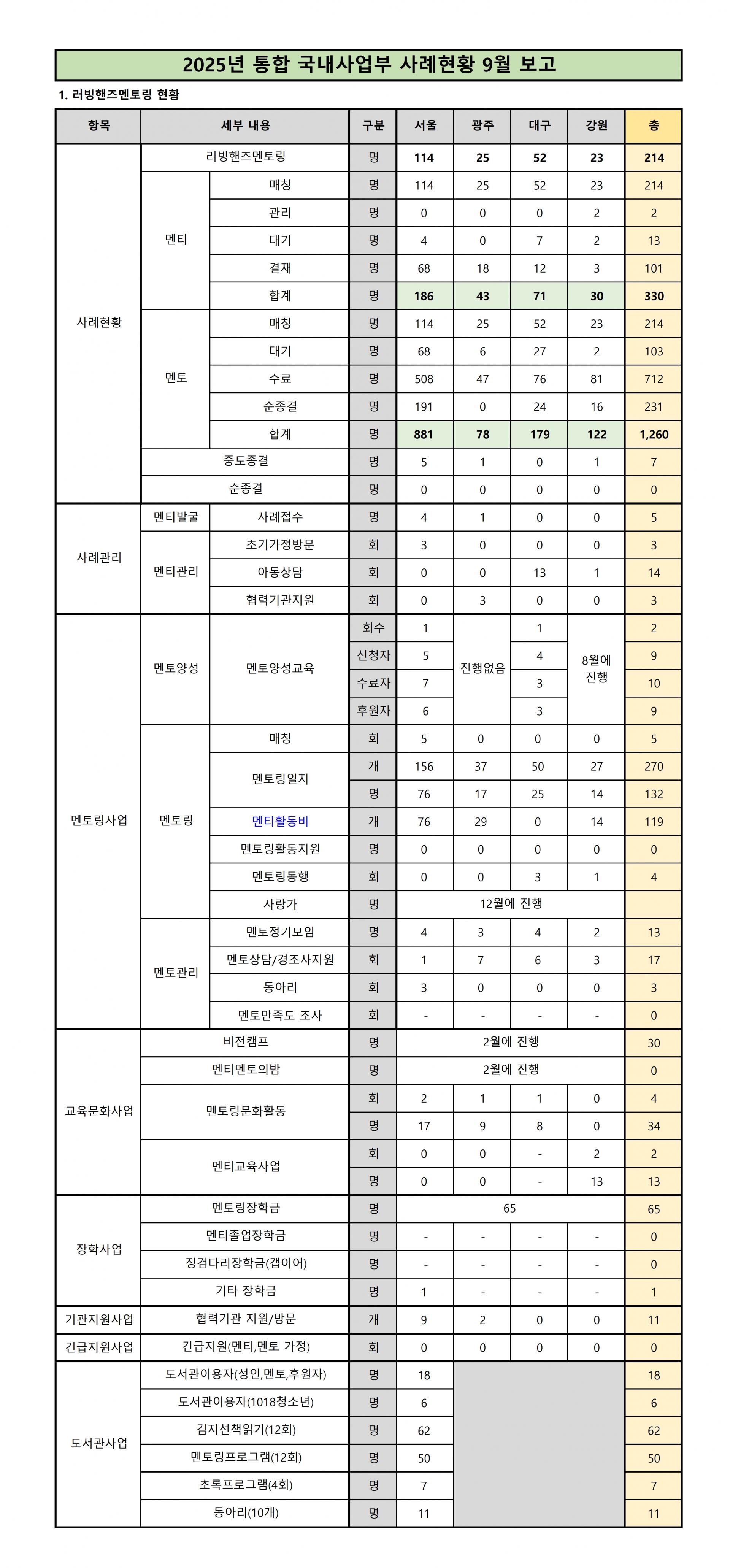 [사업보고/국내사업부] 2025년 9월 사례현황보고입니다.