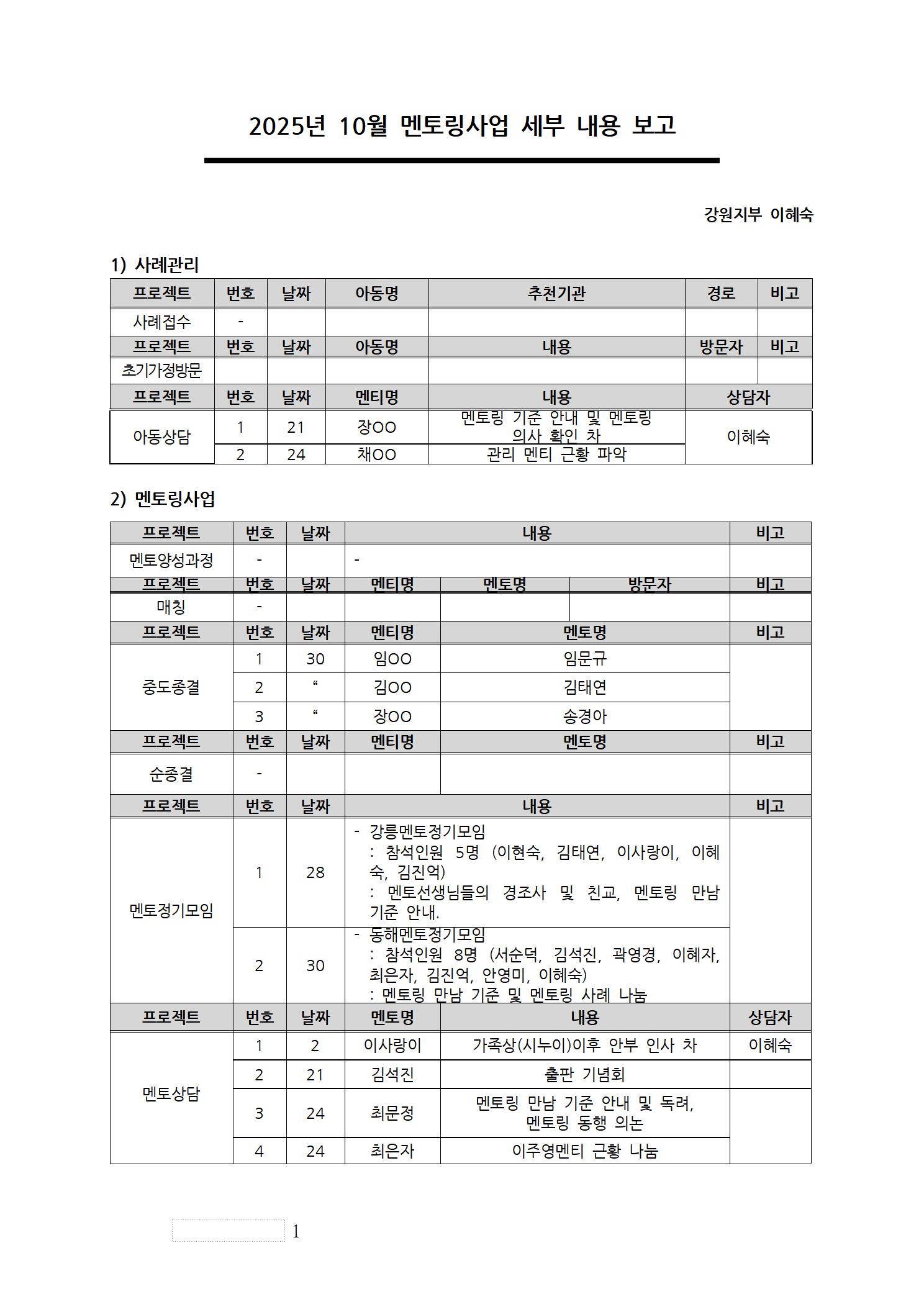 [사업보고/강원지부] 2025년 10월 사업보고입니다.